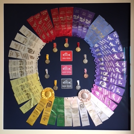 Swimming ribbons and awards won by Tariq Mohammed 1986-92.