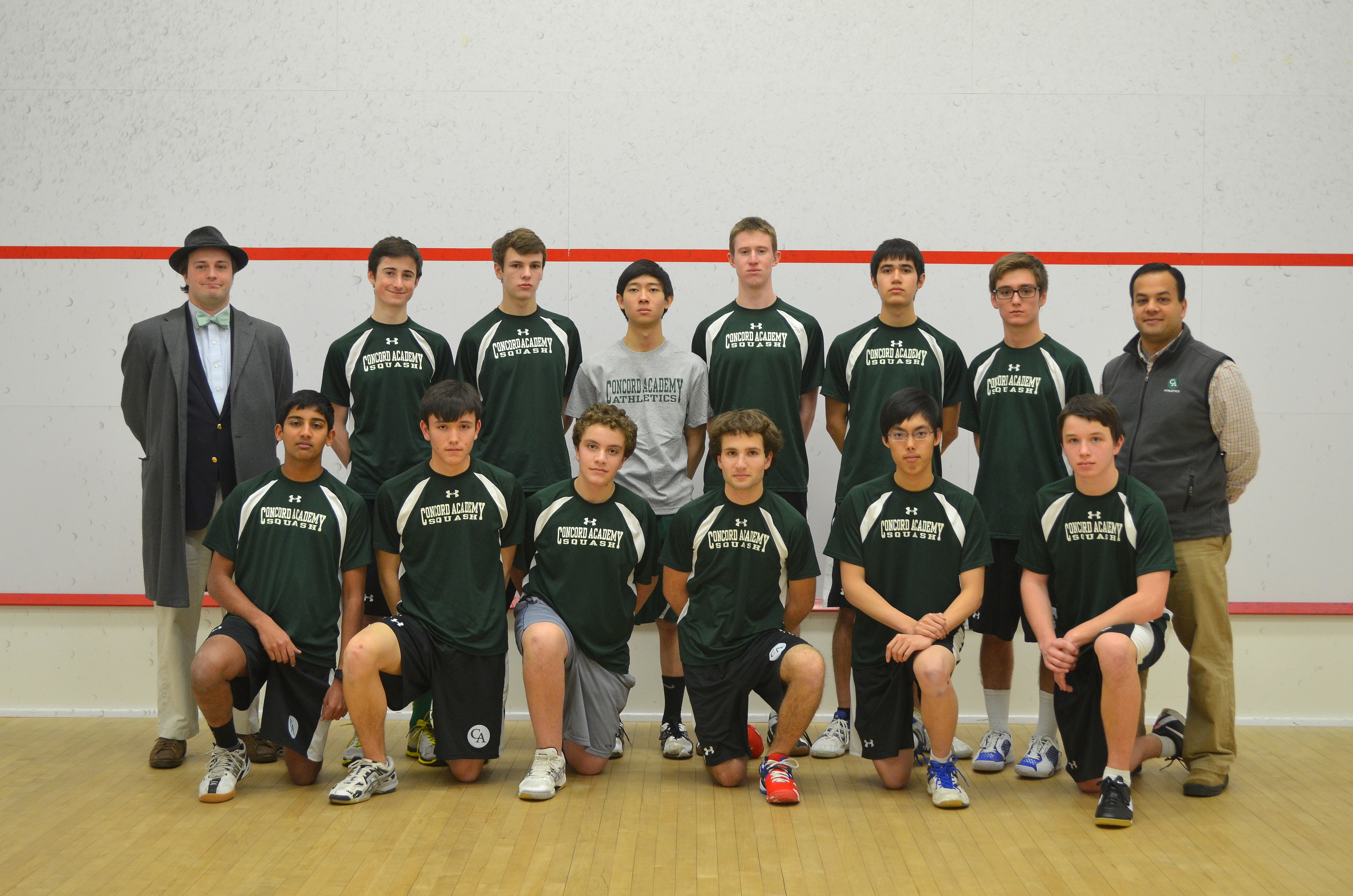 2013-14 Concord Academy Boys Varsity Squash with Coaches, Charlotte Whitmore and Tariq Mohammed.